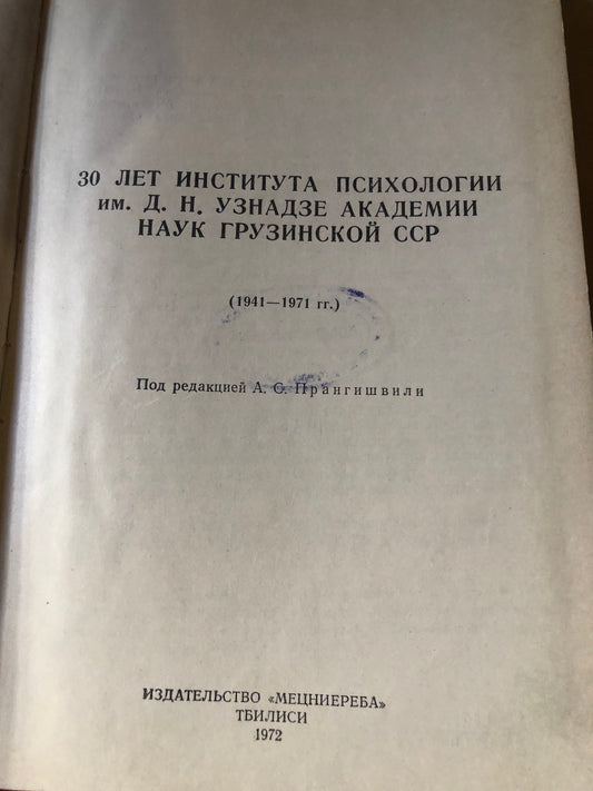 30 ЛЕТ ИНСТИТУТА ПСИХОЛОГИИ ИМ. Д. Н. УЗНАДЗЕ АКАДЕМИИ НАУК ГРУЗИНСКОЙ ССР