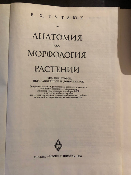 АНАТОМИЯ И МОРФОЛОГИЯ РАСТЕНИЙ. АВТОР: В. Х. ТУТАЮК