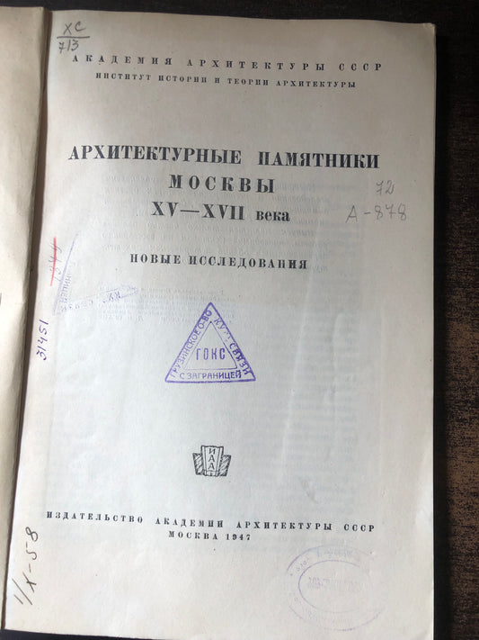 АРИТЕКТУРНЫЕ ПАЧЯТНИКИ МОСКВЫ