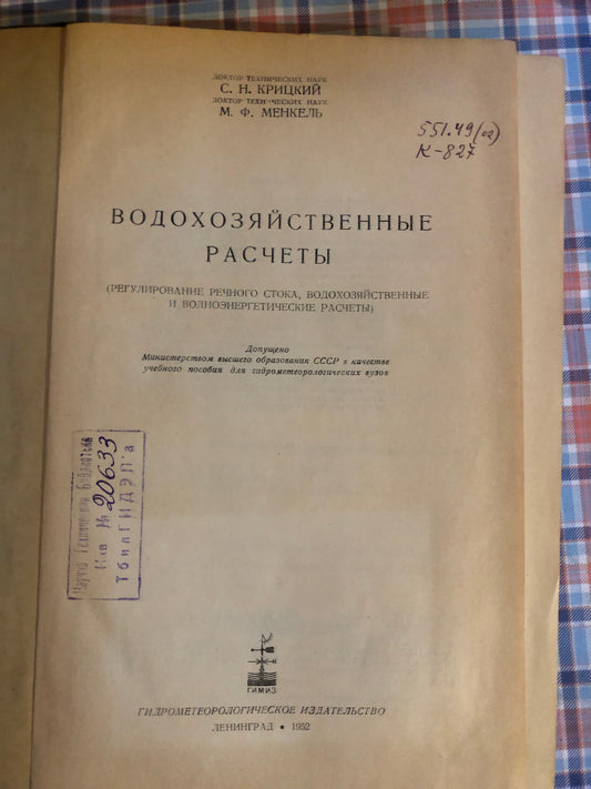 ВОДОХОЗЯЙСТВЕННЫЕ РАСЧЕТЫ