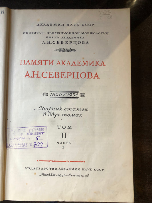 ПАМЯТИ АКАДЕМИКА А. Н. СЕВЕРЦОВА: ТОВ ВТОРОЙ