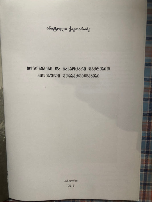 ანატოლი ქავთარაძე -მოგონებები და გასაოცარი ფაქტებით მიღებული შთაბეჭდილებები