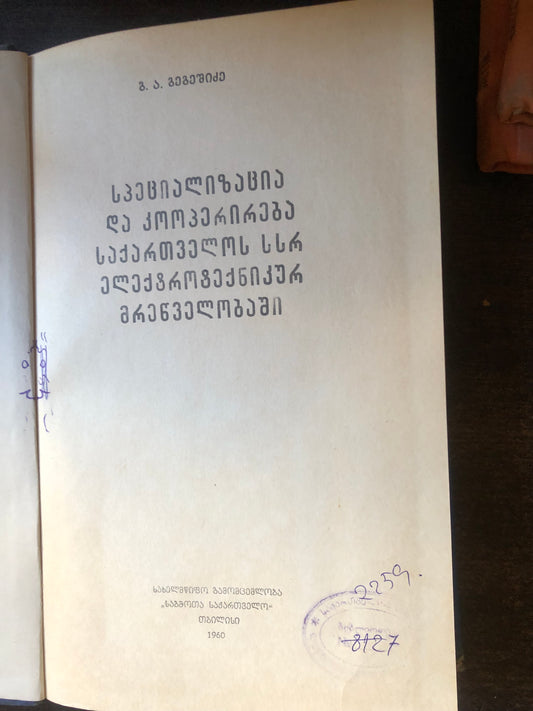 გ. ა. გეგეშიძე - სპეციალიზაცია და კოოპერირება საქართველოს სსრ ელექტროტექნიკურ მრეწველობაში