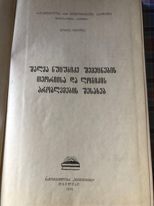 ბორის ურიდია - შალვა ნუცუბიძე, შემეცნების თეორიისა და ლოგიკის პრობლემების შესახებ