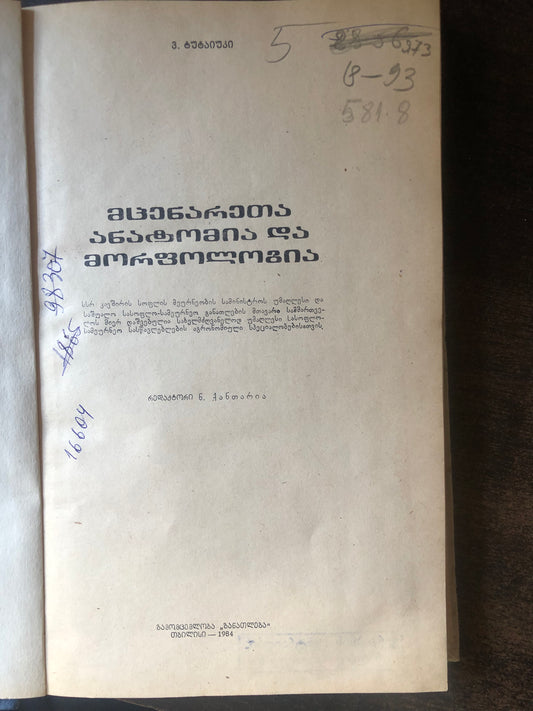 ვ. ტუტაიუკი - მცენარეთა ანატომია და მორფოლოგია