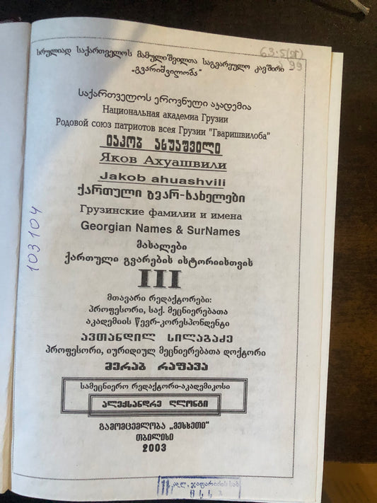 იაკობ ახუაშვილი - ქართული გვარ-სახელები (ტომი III)