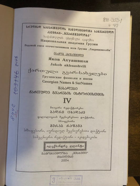 იაკობ ახუაშვილი - ქართული გვარ-სახელები (ტომი IV)