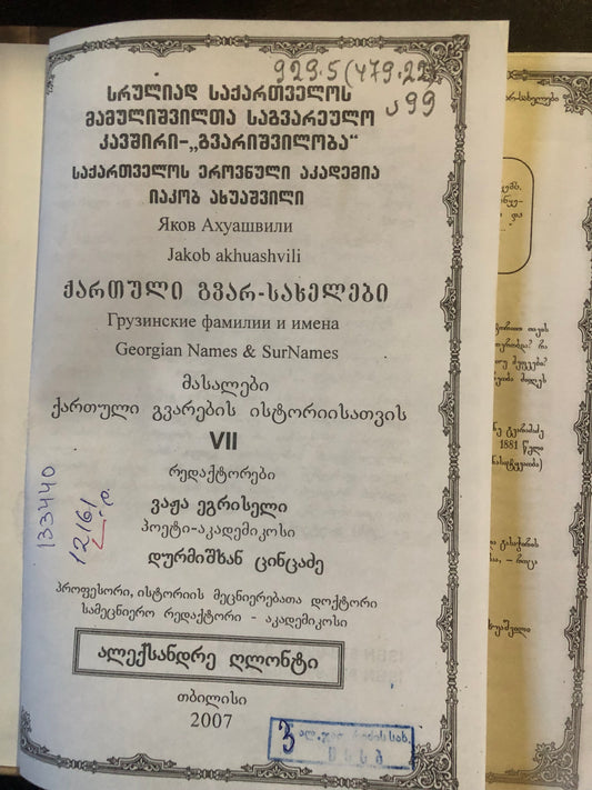 იაკობ ახუაშვილი - ქართული გვარ-სახელები (ტომი VII)