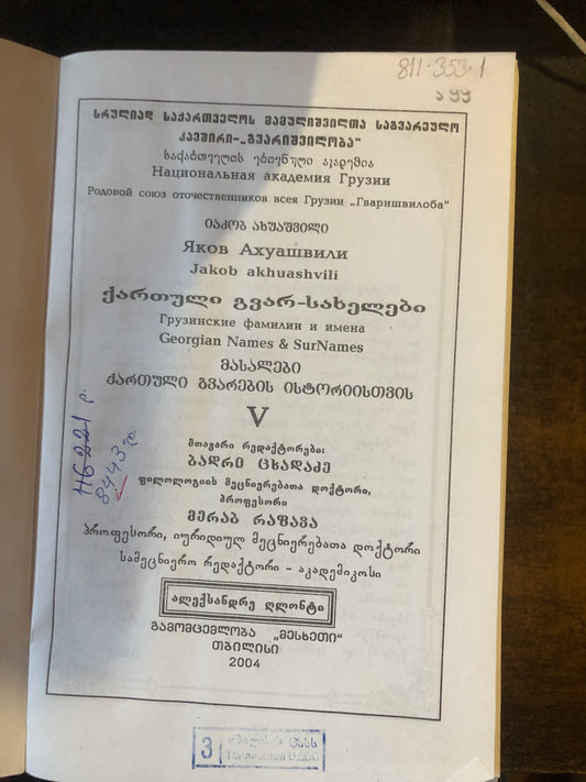 იაკობ ახუაშვილი - ქართული გვარ-სახელები (ტომი V)