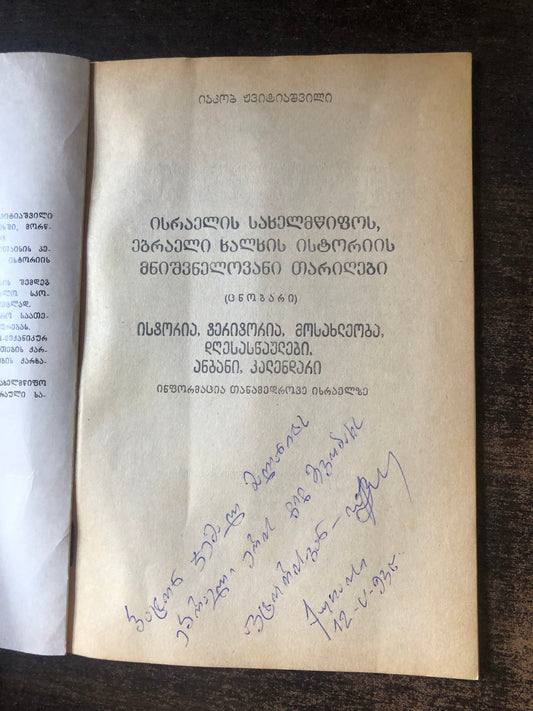 იაკობ ჟვიტიაშვილი - ისრაელის სახელმწიფოს ებრაელი ხალხის ისტორიის მნიშვნელოვანი თარიღები