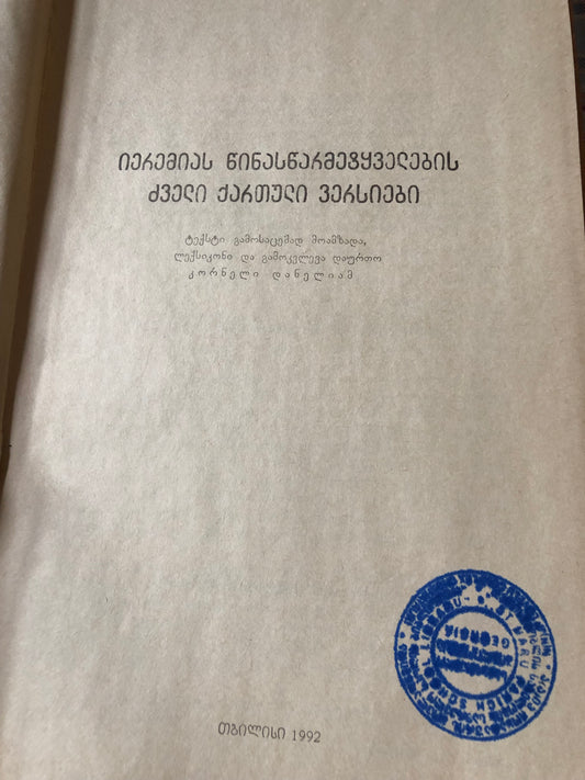 იერემიას წინასწარმეტყველების ძველი ქართული ვერსიები