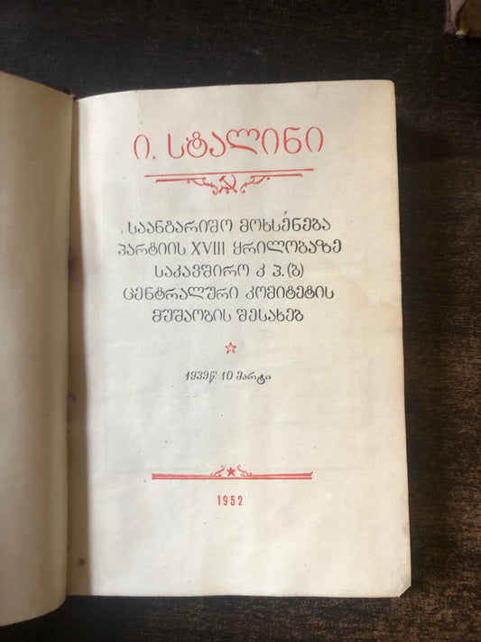 იოსებ სტალინი - საანგარიშო მოხსენება პარტიის XVII ყრილობაზე საკავშირო კ პ.(ბ) ცენტრალური კომიტეტის მუშაობის შესახებ