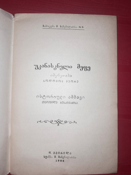 იმერეთის მეფე სოლომონ მეორე. ავტორი: თეოფილე ხუსკივაძე (რეპრინტული გამოცემა)