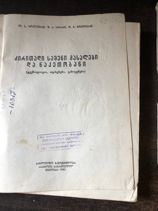ლ.ბოლქვაძე,შ.სირაძე,დ.ჩოგავაძე - ძირითადი საშენი მასალები და ნაკეთობანი