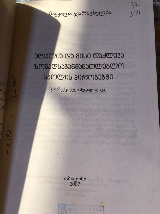 მაყვალა კვარაცხელია - ალალია და მისი დაძლევა ზოგადსაგანმანათლებლო სკოლის პირობებში