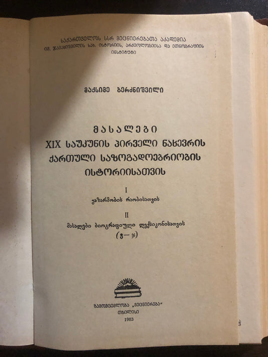 მაქსიმე ბერძნიშვილი - მასალები XIX საუკუნის პირველი ნახევარის ქართული საზოგადოებრიობის ისტორიისათვის II