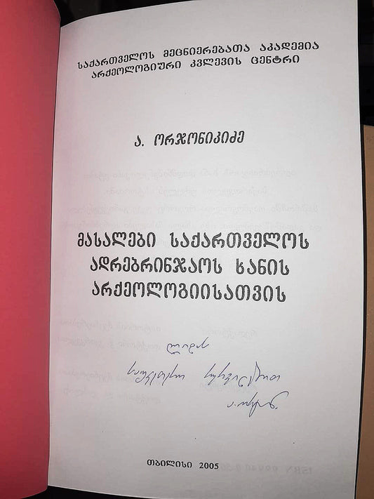 მასალები საქართველოს ადრებრინჯაოს ხანის არქეოლოგიისათვის. ავტორი: ა. ორჯონიკიძე