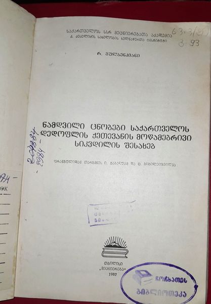 ნამდვილი ცნობები საქართველოს დედოფლის ქეთევანის მოწამებრივი სიკვდილის შესახებ. ავტორი: რ. გულბბენკიანი