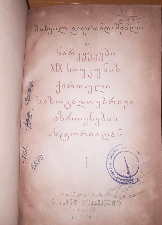 ნარკვევები ქართული საზოგადოებრივი აზროვნების ისტორიიდან (ტომი I). ავტორი: მიხეილ გაფრინდაშვილი