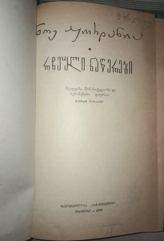 რჩეული ნაწერები. ავტორი: ნოე ჟორდანია