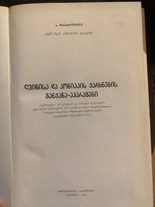 ს. მესარქიშვილი - ღვინისა და კონიაკის მანქანა-აპარატები