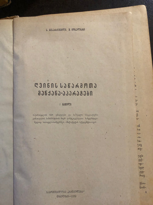 ს. მესარქიშვილი, შ .იოსელიანი - ღვინის საწარმოთა მანქანა-აპარატები