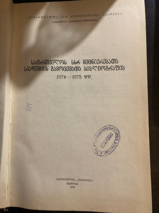 საქართველოს სსრ მეცნიერებათა აკადემიის გამოცემათა ბიბლიოგრაფია 1974-1975 წწ.